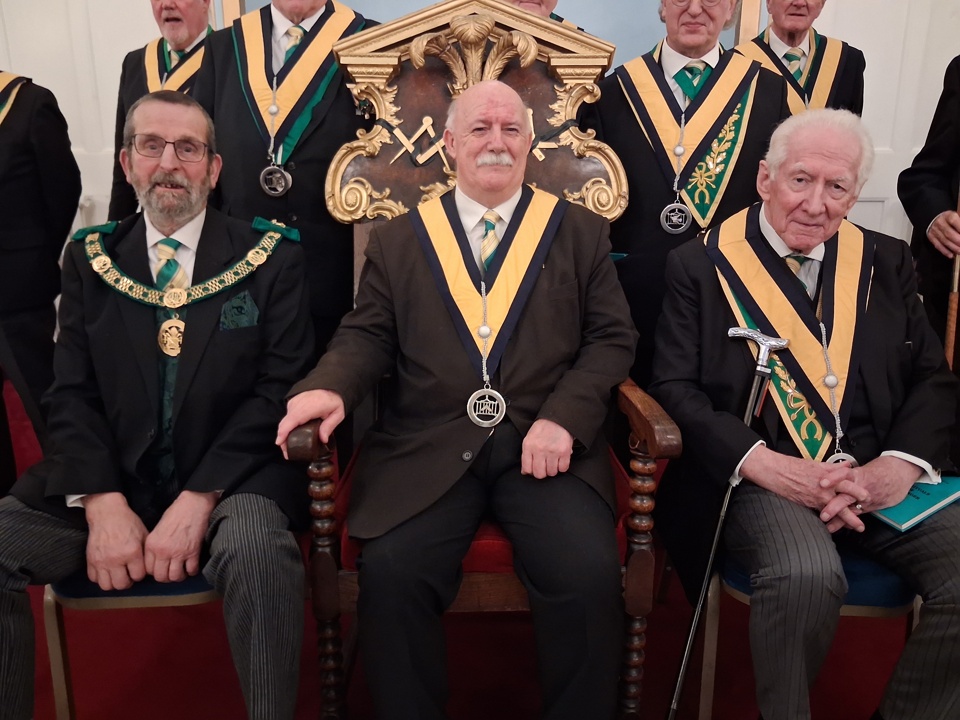 Our District Grand Prefect with Visitor Steve Finch and the newly installed Worshipful Master.