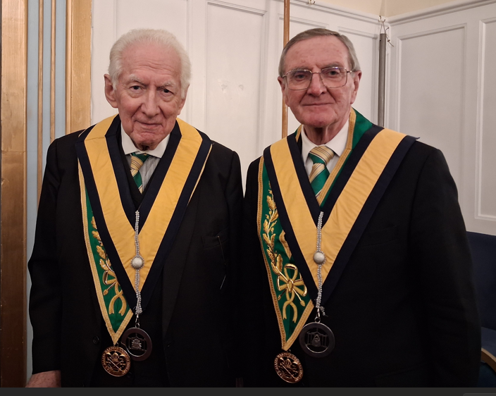 R.W.Bro. Tom Auber, Worshipful Master and Bro. Mark Shields, who wears the regalia of the AMD of France.